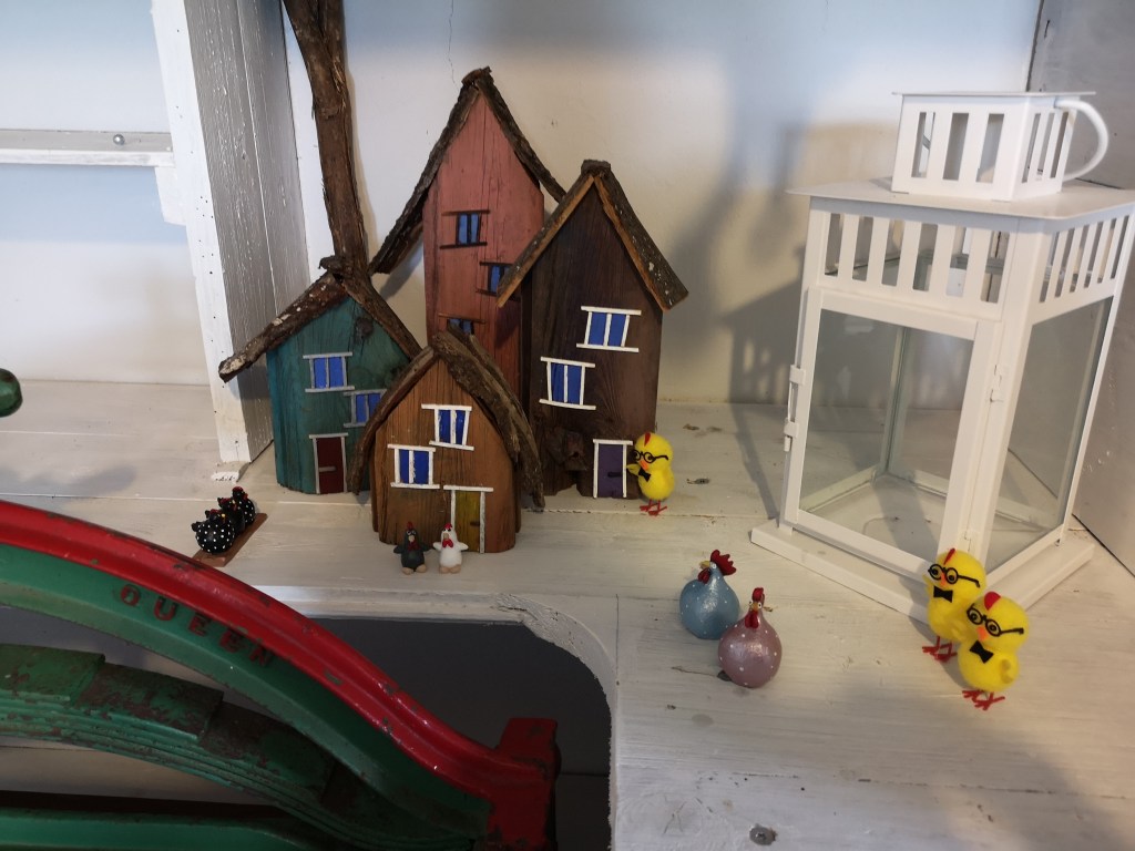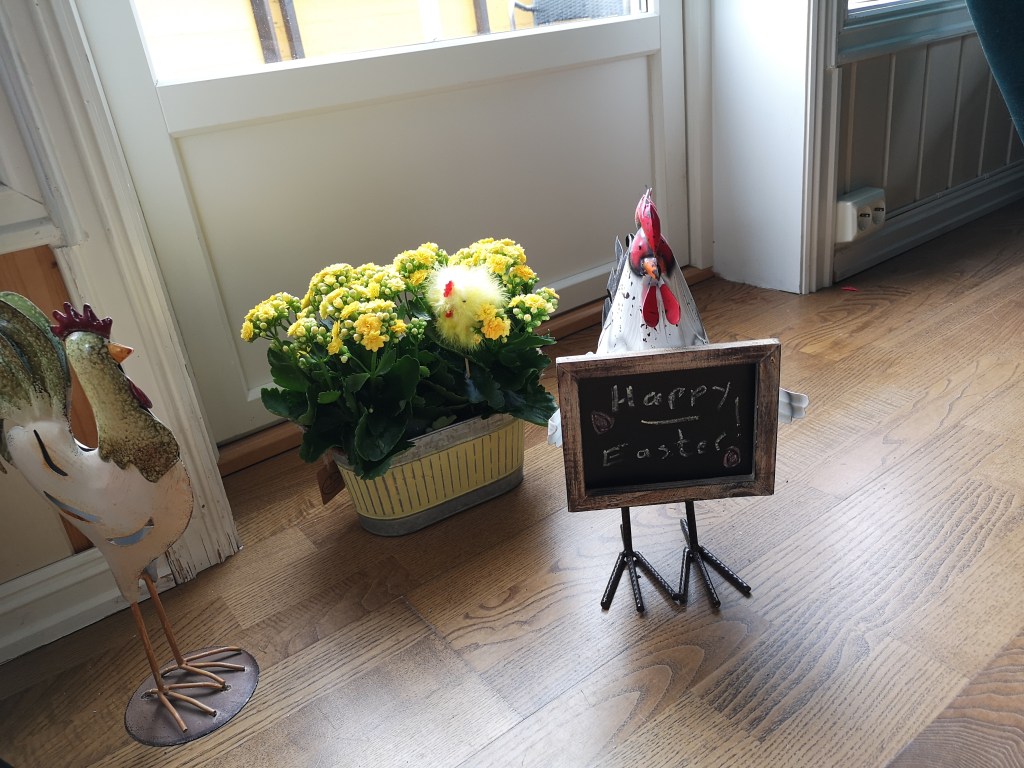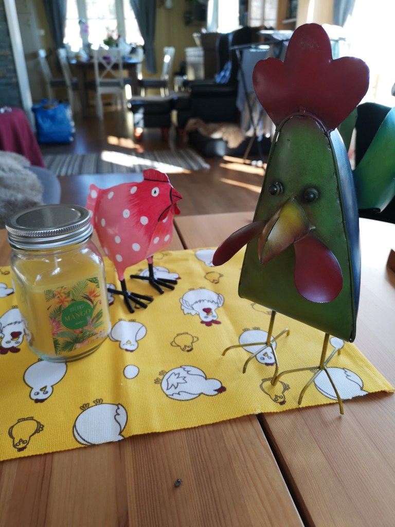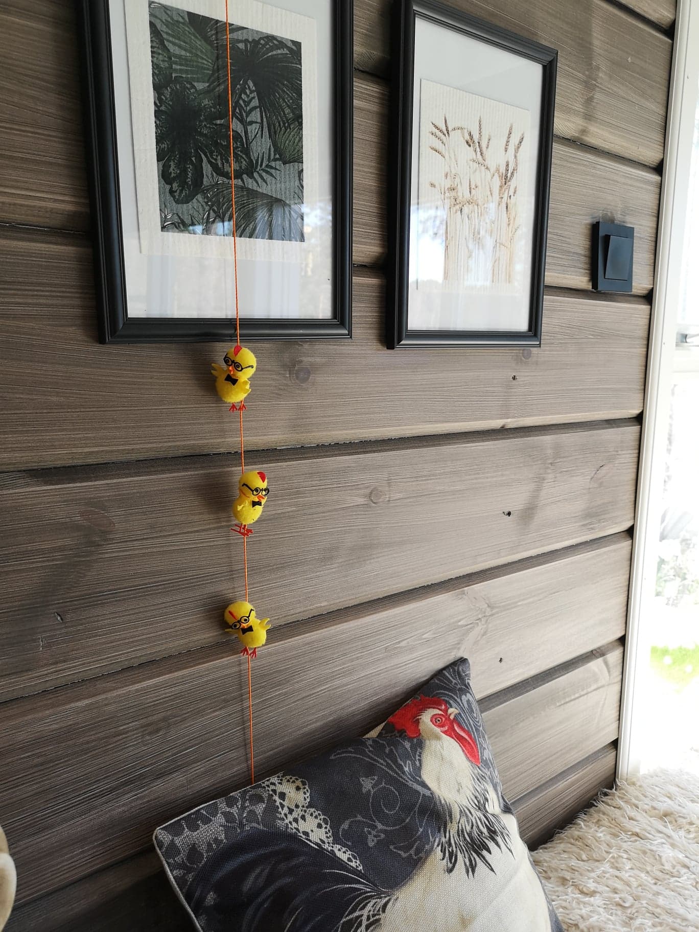 De to små gule kyllingene svingte seg og viste frem flott akrobatikk, høyt oppe i treet mens hønseflokken lydig spiste matpakken sin. Innimellom kom små oj-rop fra gjengen, dette var flotte greier altså. Brille sto med hjertet i halsen mens de holdt på, han hadde høydeskrekk og hadde friskt i minne høydeopplevelsene fra forrige års påske.