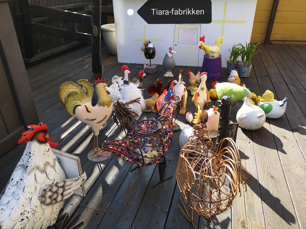 «Neste stopp på ekspedisjonen er inne på det rommet som kalles Grekenland. Her skal vi også opp i ei hylle» – nå var det Brille som ledet an for gruppa. «Å, for noe skjønne trehus» – den lille hvite høna slo de små vingene sammen av begeistring. Vennen hennes hanen SvarteLars, var helt enig, «tenk om vi to kunne bodd i et slikt hus» – blunket han til venninna som rødmet.